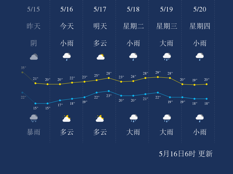 中国天气网讯 今天是5月16日星期日,一起来看天气。