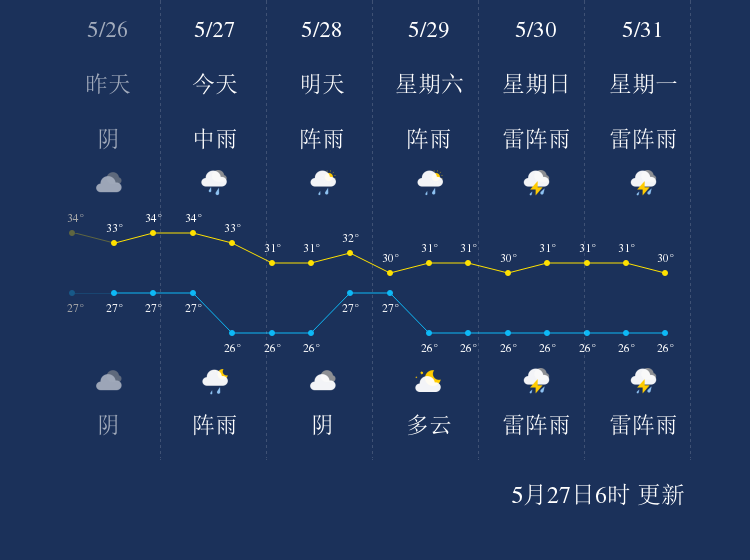 中国天气网讯 今天是5月28日星期五,一起来看天气。