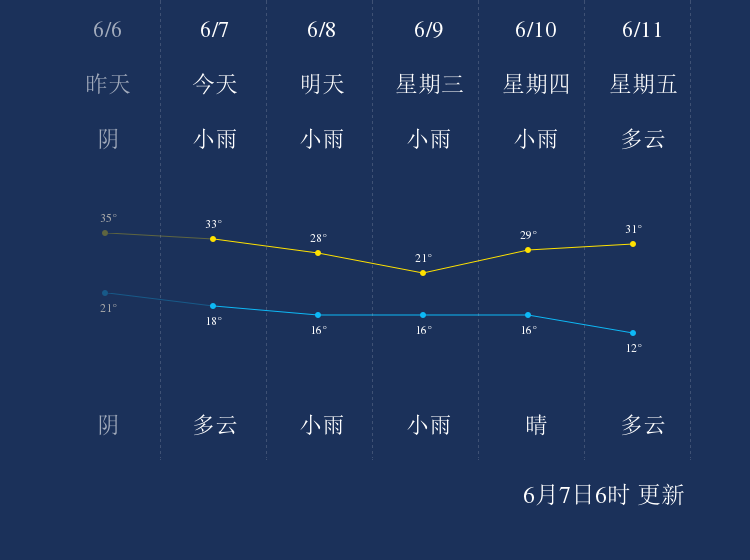 中国天气网讯 今天是6月7日星期一,一起来看天气。