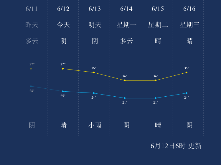 中国天气网讯 今天是6月12日星期六,一起来看天气。