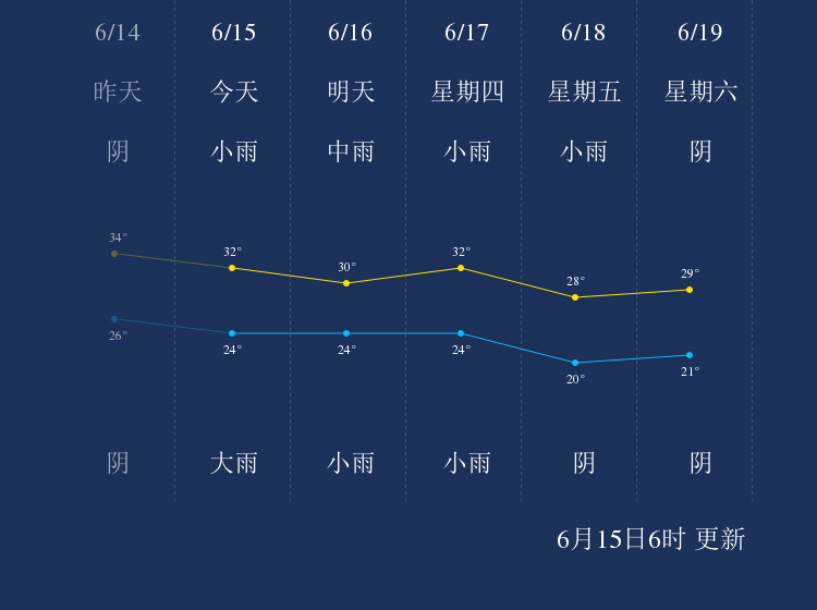 中国天气网讯 今天是6月15日星期二,一起来看天气。