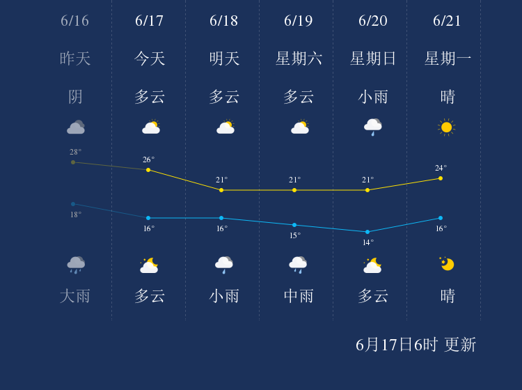 中国天气网讯 今天是6月17日星期四,一起来看天气。