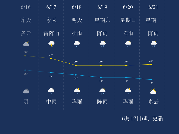 中国天气网讯 今天是6月17日星期四,一起来看天气。