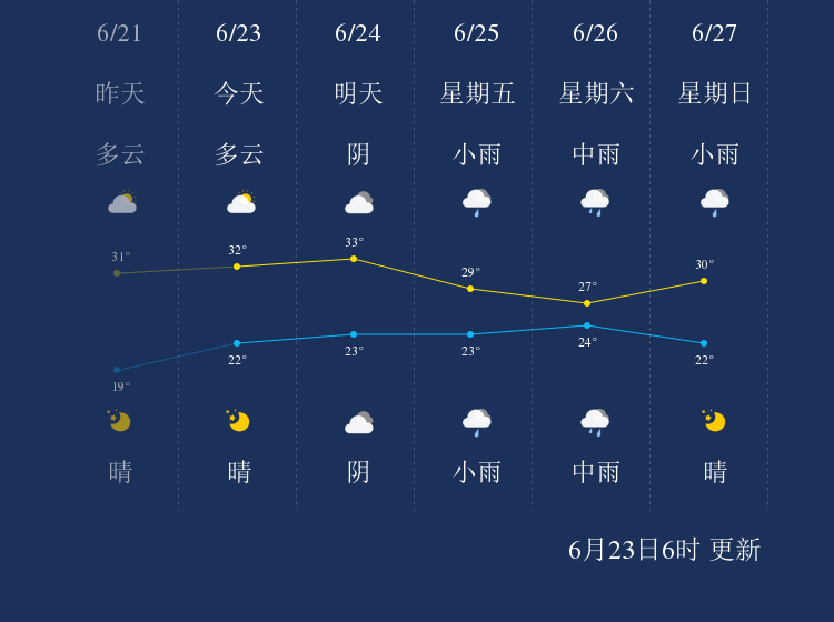 中国天气网讯 今天是6月23日星期三,一起来看天气。