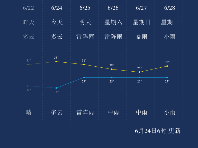 中国天气网讯 今天是6月24日星期四,一起来看天气。
