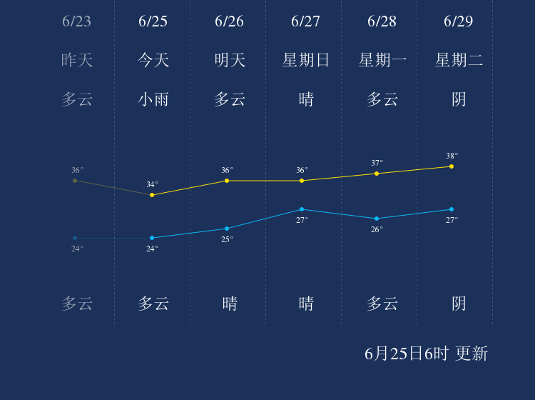 中国天气网讯 今天是6月25日星期五,一起来看天气。