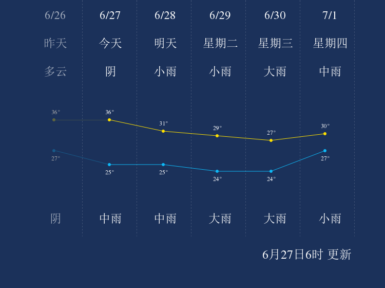 中国天气网讯 今天是6月27日星期日,一起来看天气。