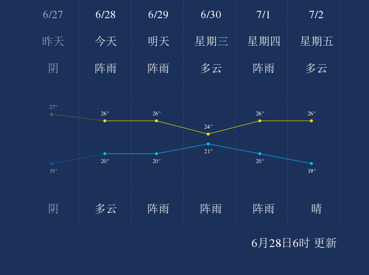 中国天气网讯 今天是6月28日星期一,一起来看天气。