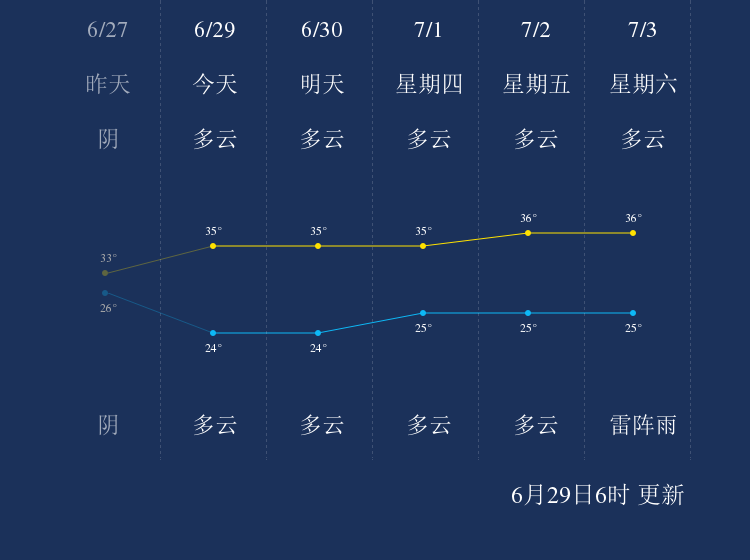 中国天气网讯 今天是6月29日星期二,一起来看天气。