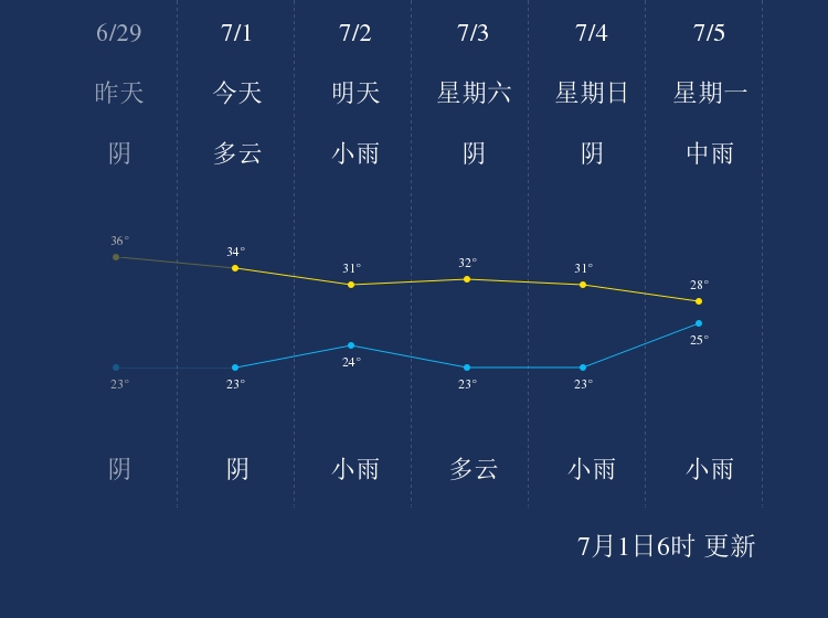 中国天气网讯 今天是7月1日星期四,一起来看天气。