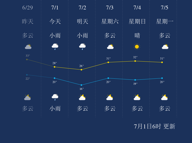 中国天气网讯 今天是7月1日星期四,一起来看天气。