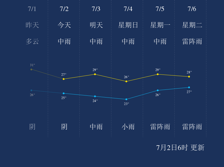 中国天气网讯 今天是7月2日星期五,一起来看天气。