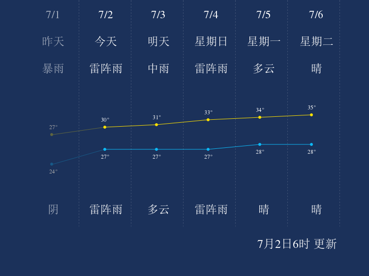 中国天气网讯 今天是7月2日星期五,一起来看天气。