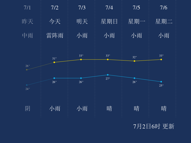 中国天气网讯 今天是7月2日星期五,一起来看天气。