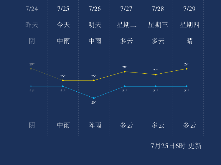 中国天气网讯 今天是7月25日星期日,一起来看天气。