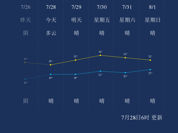 中国天气网讯 今天是7月28日星期三,一起来看天气。