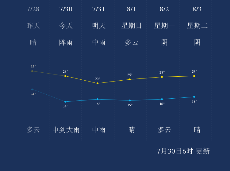 中国天气网讯 今天是7月30日星期五,一起来看天气。