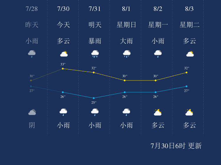 中国天气网讯 今天是7月30日星期五,一起来看天气。