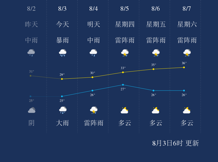 中国天气网讯 今天是8月3日星期二,一起来看天气。