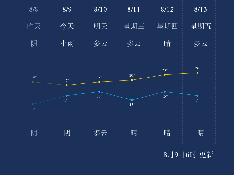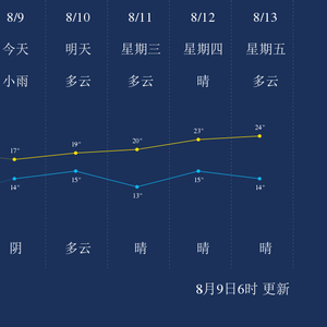 中国天气网讯 今天是8月9日星期一,一起来看天气。