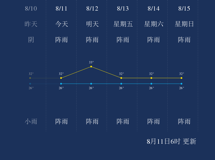 中国天气网讯 今天是8月11日星期三,一起来看天气。