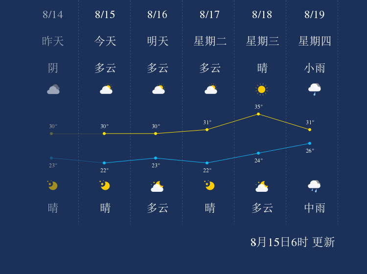 中国天气网讯 今天是8月15日星期日,一起来看天气。