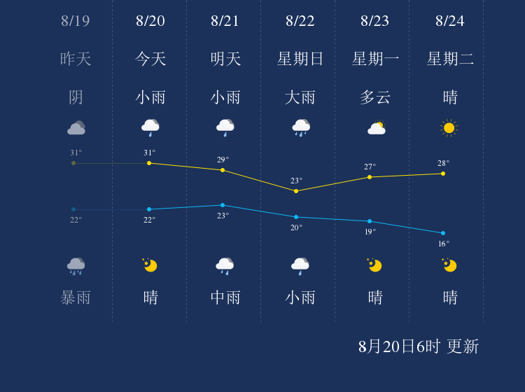 中国天气网讯 今天是8月20日星期五,一起来看天气。