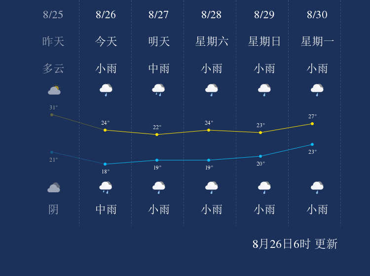 中国天气网讯 今天是8月26日星期四,一起来看天气。