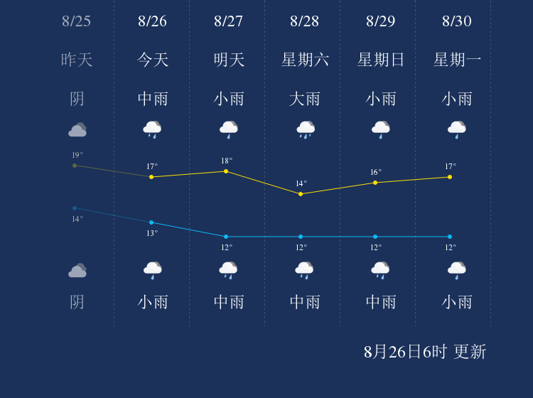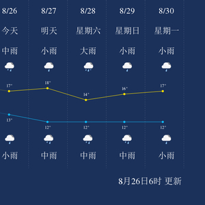 中国天气网讯 今天是8月26日星期四,一起来看天气。