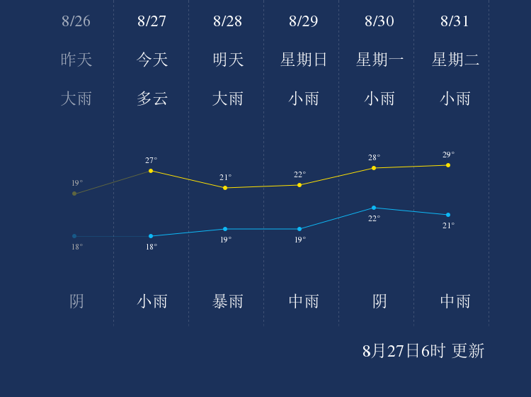 中国天气网讯 今天是8月27日星期五,一起来看天气。
