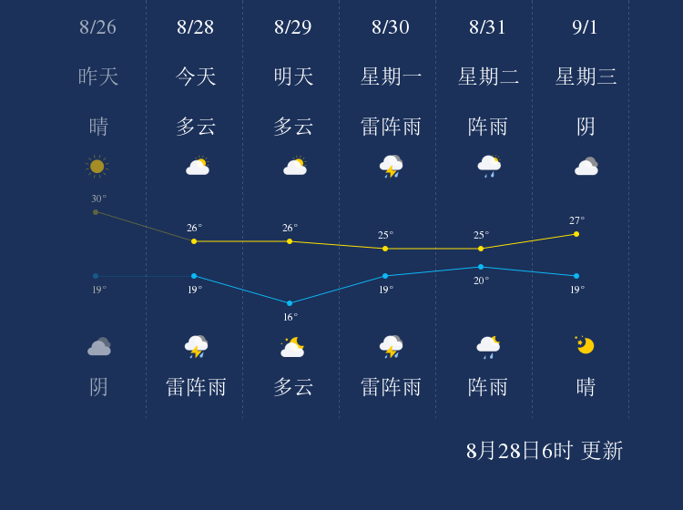中国天气网讯 今天是8月28日星期六,一起来看天气。