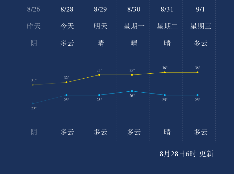 中国天气网讯 今天是8月28日星期六,一起来看天气。