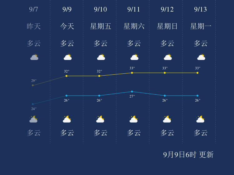 中国天气网讯 今天是9月9日星期四,一起来看天气。