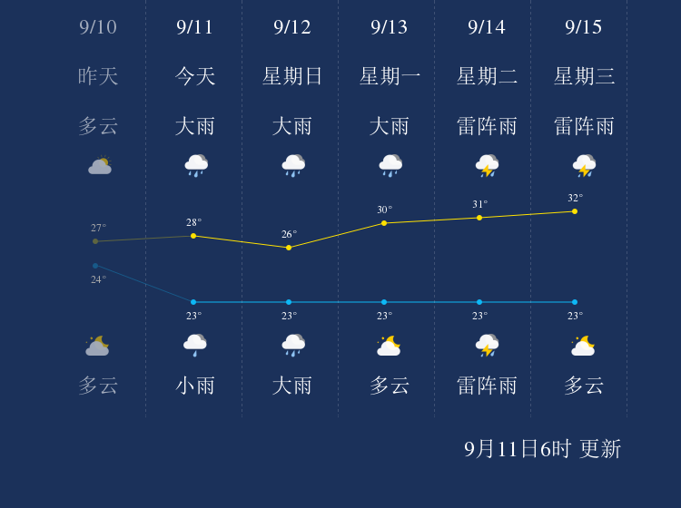 中国天气网讯 今天是9月11日星期六,一起来看天气。