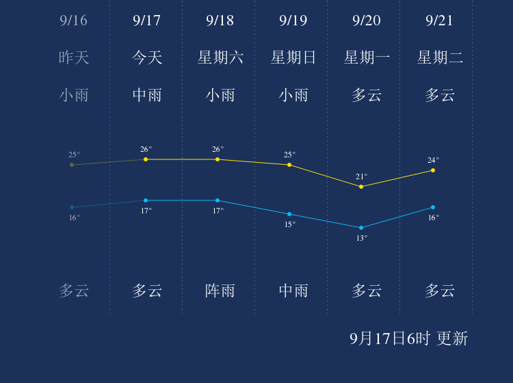 中国天气网讯 今天是9月17日星期五,一起来看天气。