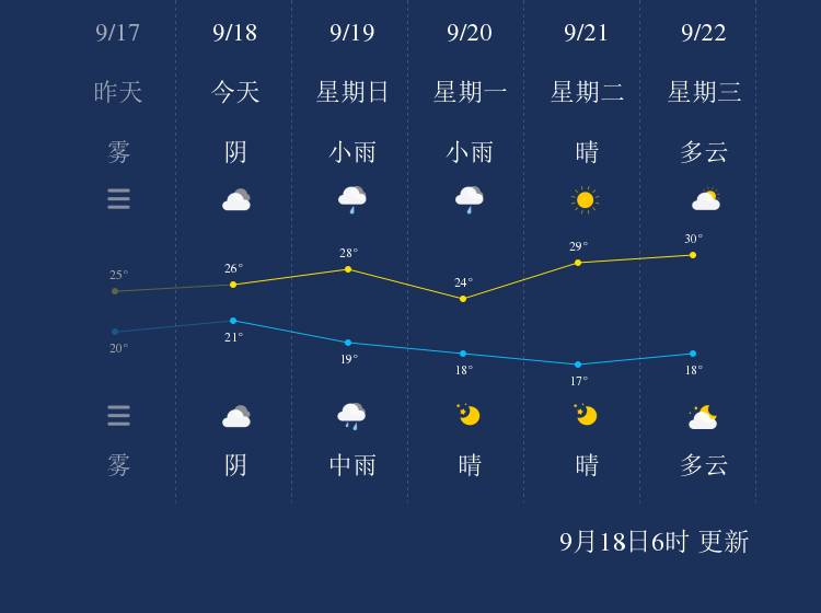 中国天气网讯 今天是9月18日星期六,一起来看天气。