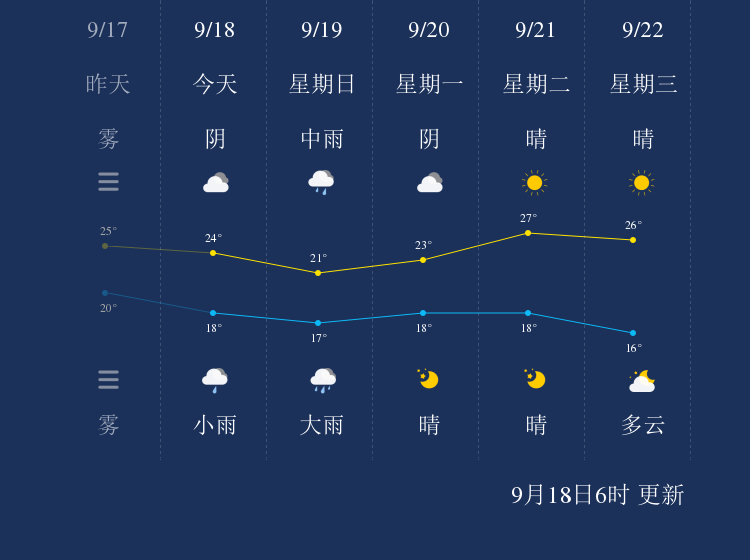 中国天气网讯 今天是9月18日星期六,一起来看天气。