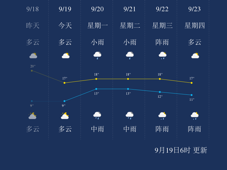 中国天气网讯 今天是9月19日星期日,一起来看天气。