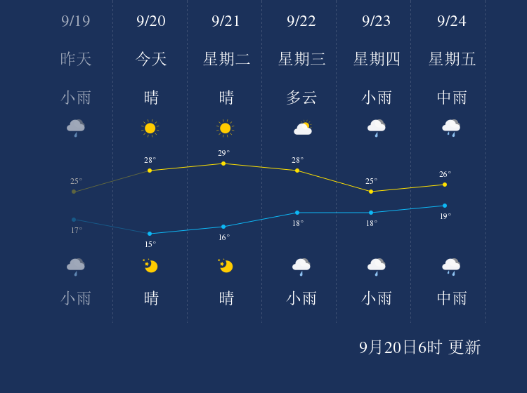 中国天气网讯 今天是9月20日星期一,一起来看天气。