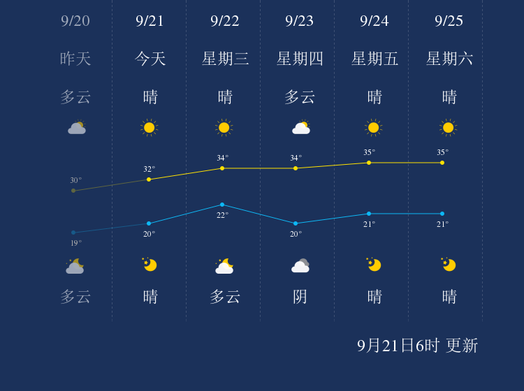 今晨6时,景德镇晴,气温19℃,东北风3-4级,相对湿度91%。