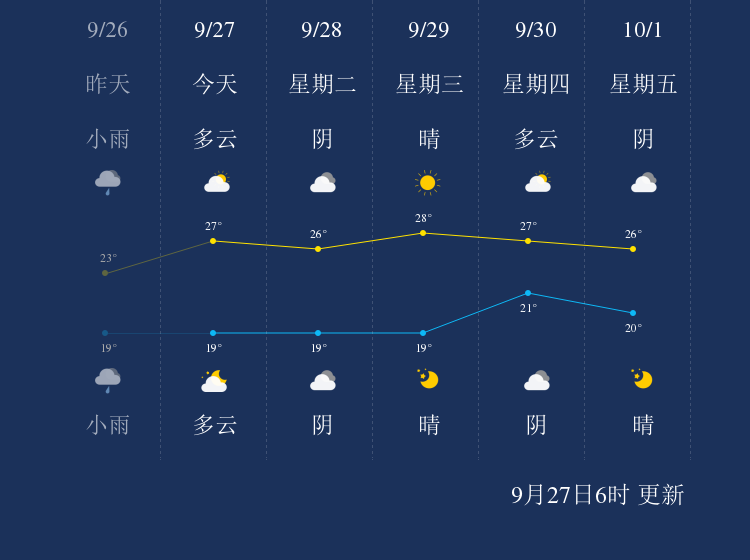 中国天气网讯 今天是9月27日星期一,一起来看天气。