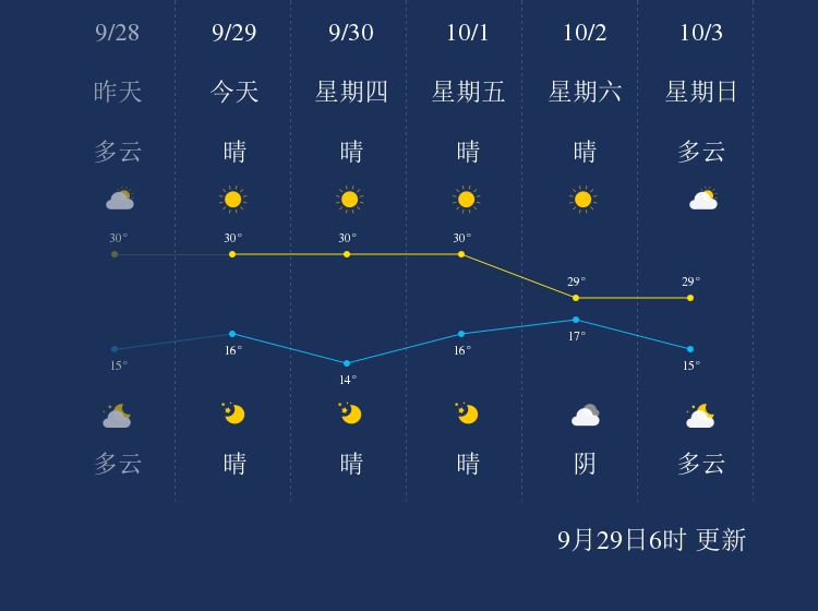 中国天气网讯 今天是9月29日星期三,一起来看天气。
