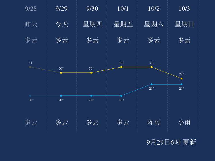 中国天气网讯 今天是9月29日星期三,一起来看天气。