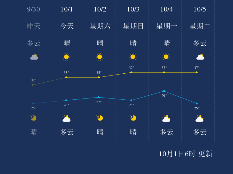 湖南省气象台9月30日16时发布高温黄色预警:预计30日20时至10月1日20时,长沙东南部、株洲、湘潭、衡阳、邵阳、张家界、郴州北部、永州、怀化东南部、娄底、湘西州东北部将达到35℃以上高温,局部地区将达37℃以上,请做好防范。