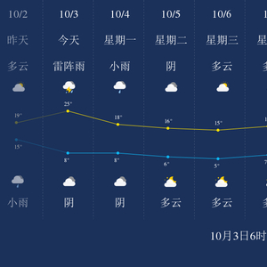 中国天气网讯 今天是10月3日星期日,一起来看天气。
