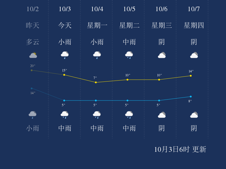中国天气网讯 今天是10月3日星期日,一起来看天气。