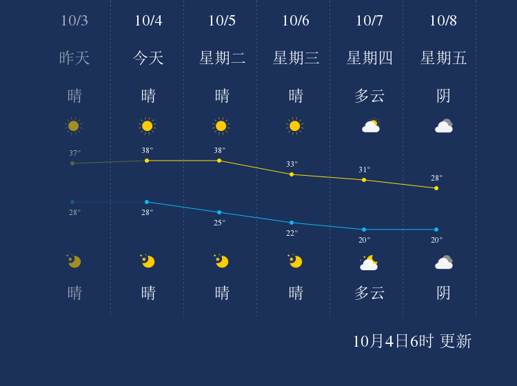 - 1、高温破极值:预计38最高气温38℃,将突破常年10月高温极值。