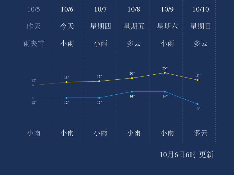 中国天气网讯 今天是10月6日星期三,一起来看天气。