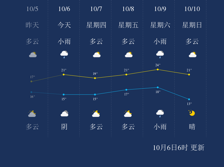 中国天气网讯 今天是10月6日星期三,一起来看天气。