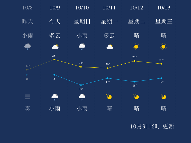 中国天气网讯 今天是10月9日星期六,一起来看天气。